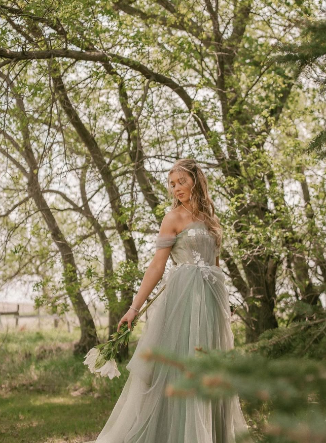 2025 New A Line Off the Shoulder Appliques Tulle Long Prom Dress Evening Dress SH2228