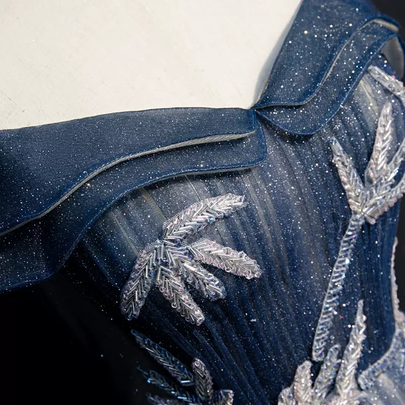 A line Off the Shoulder Blue Long Prom Dresses SH127