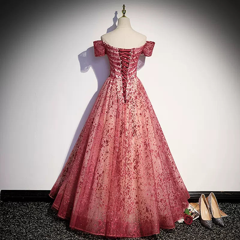 A line Off the Shoulder Red Tulle Prom Dresses SH143