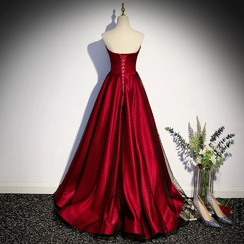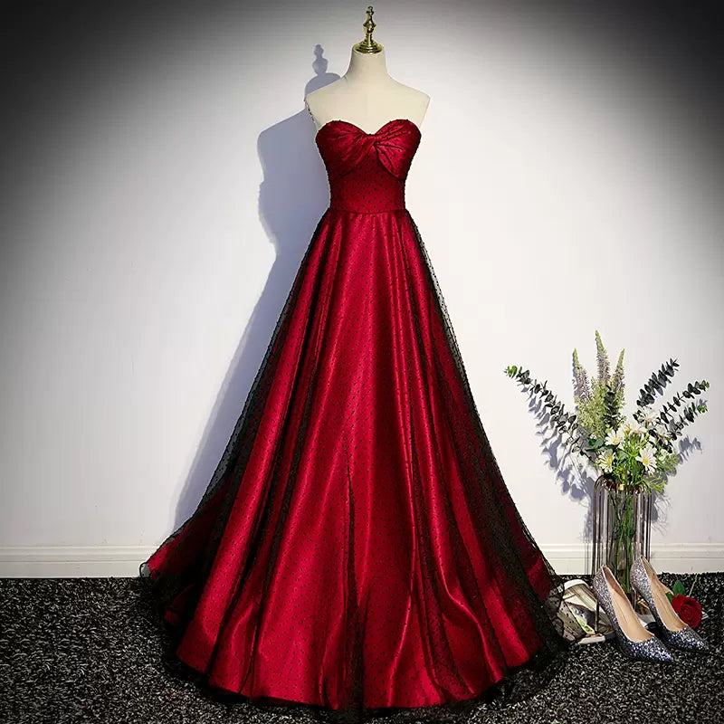 A line Short Puffy Sleeves Tulle Red Prom Dresses SH115
