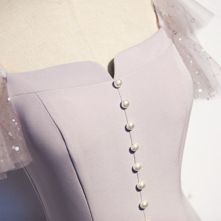 A line Short Sleeves Pink Prom Dresses Knee Length Bridesmaid Dress SH061