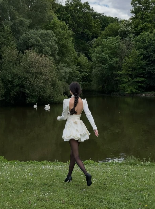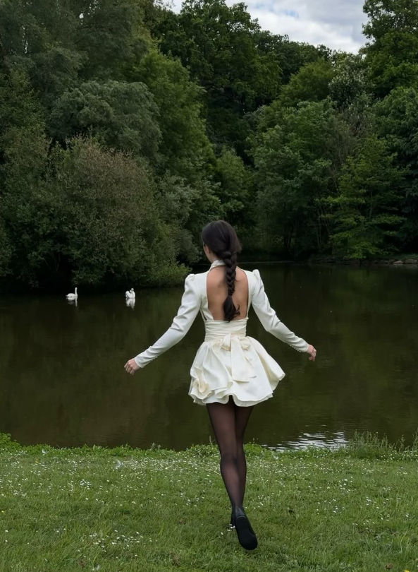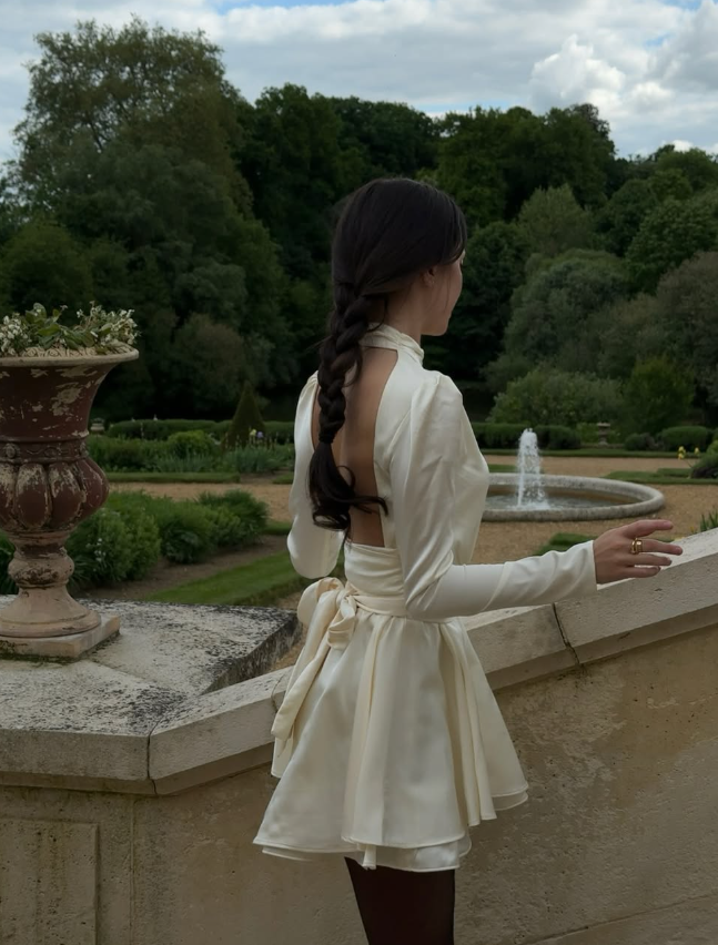 Apricot Backless A Line Long Sleeve Satin Homecoming Dress Cocktail Dress Outfits SH3914
