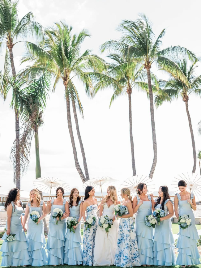 Baby Blue Mermaid Straps Tiered Satin Prom Dress Bridesmaid Dress SH2606