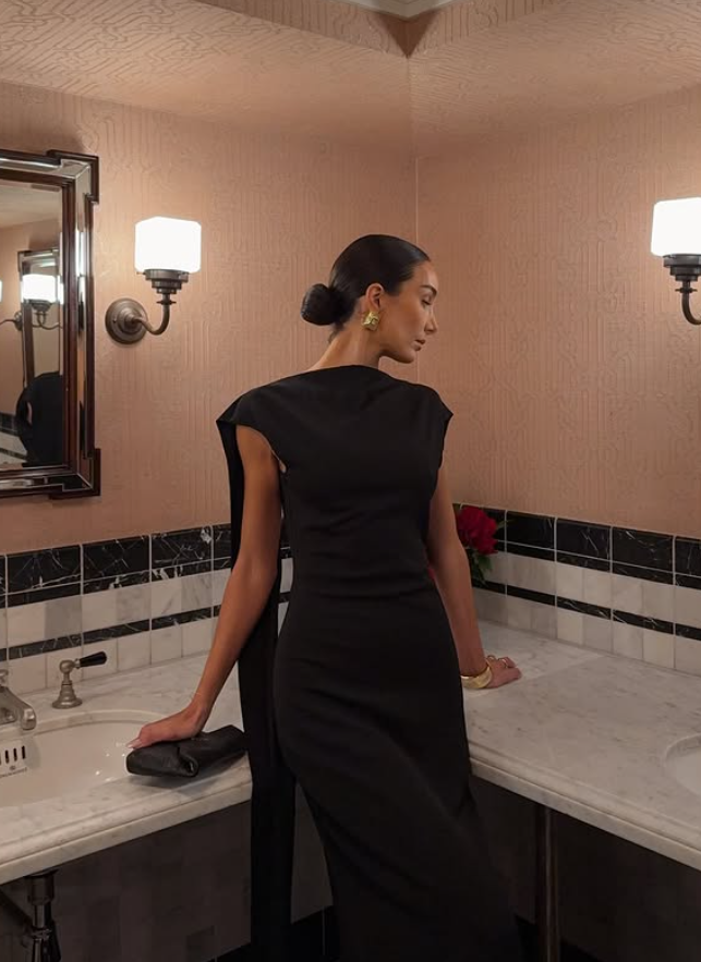 Black Elegant A Line Satin Open Back Long Evening Dress Prom Dress SH4827