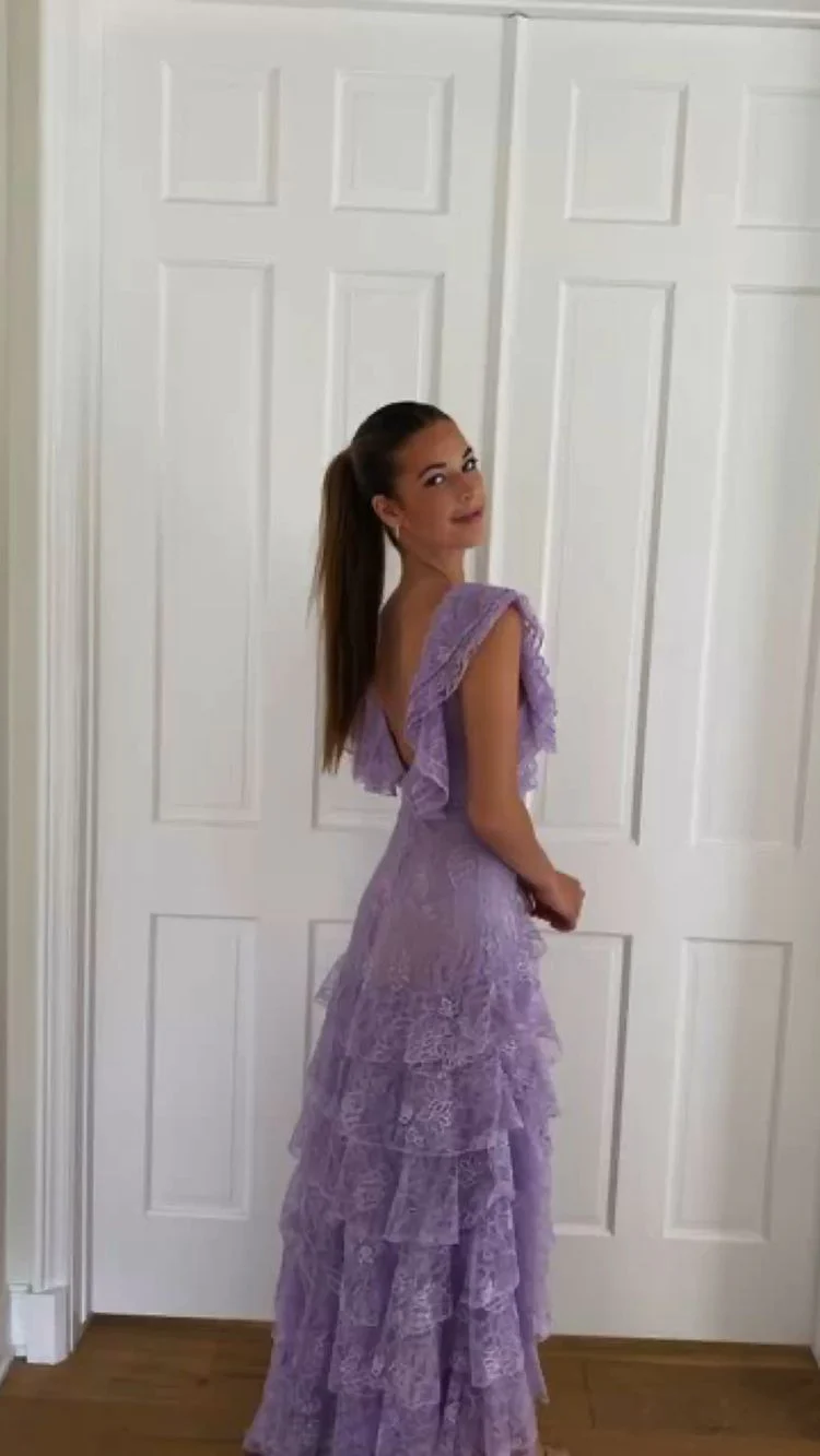 Lilac Long Prom Dress Layed Lace Evening Dress SH613