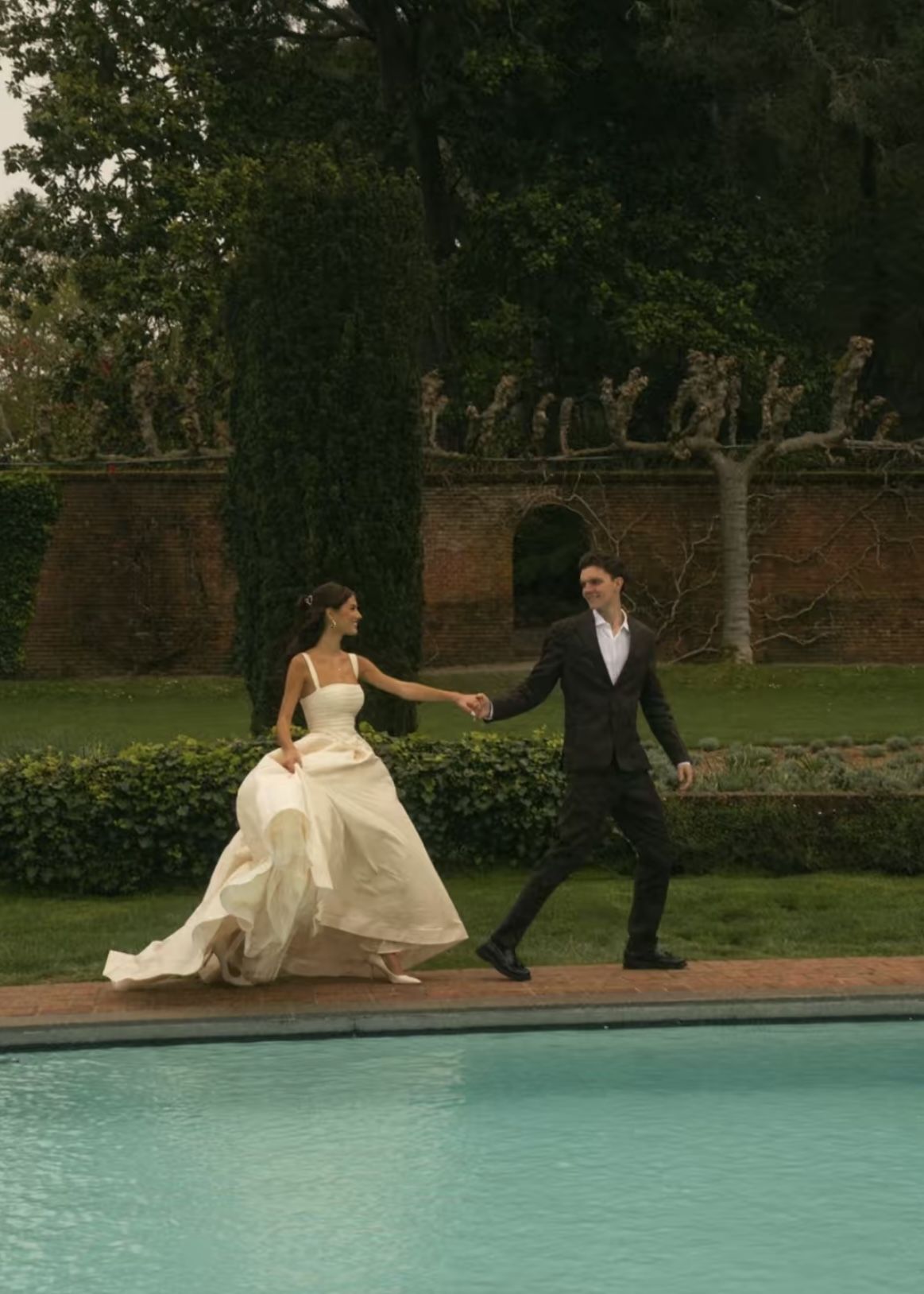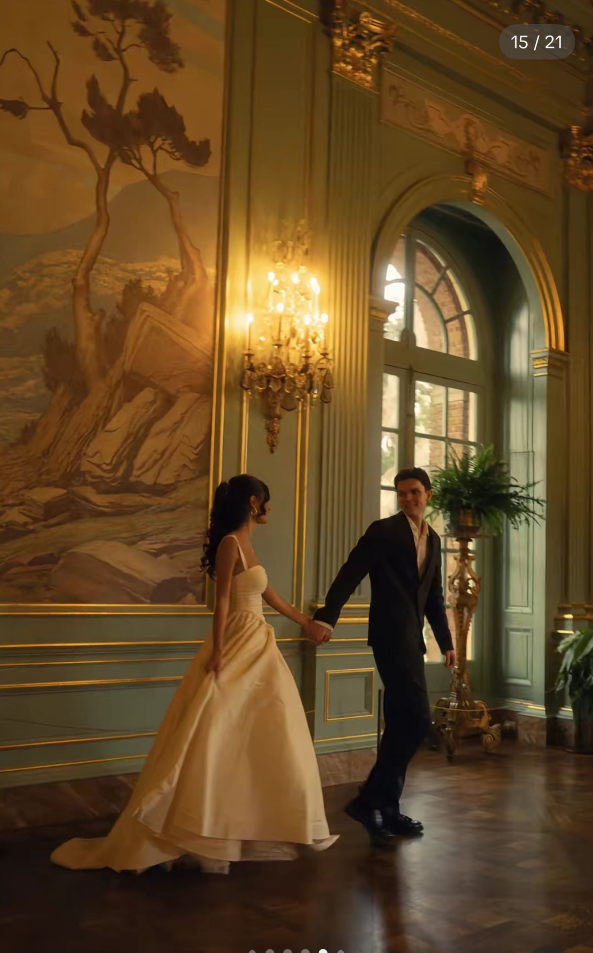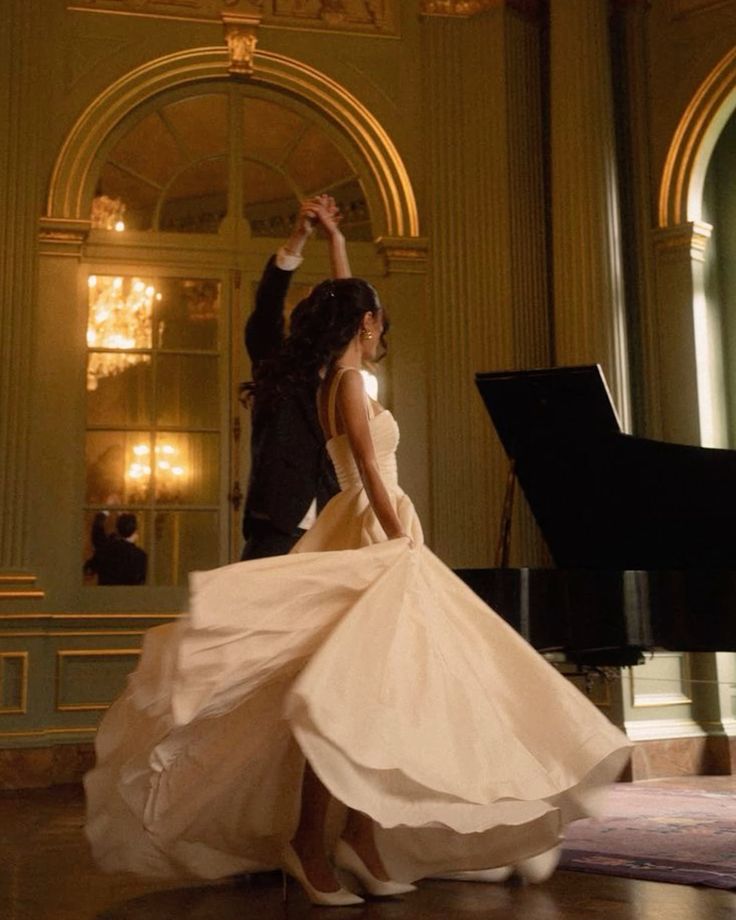 Classic Ball Gown Spaghetti Strap Pleated Simple Satin Wedding Dress SH4748