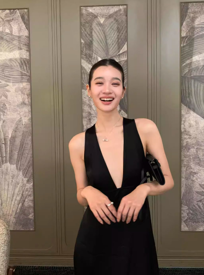 Classic Black A Line Halter Satin Open Back Prom Dress Evening Dress SH4375