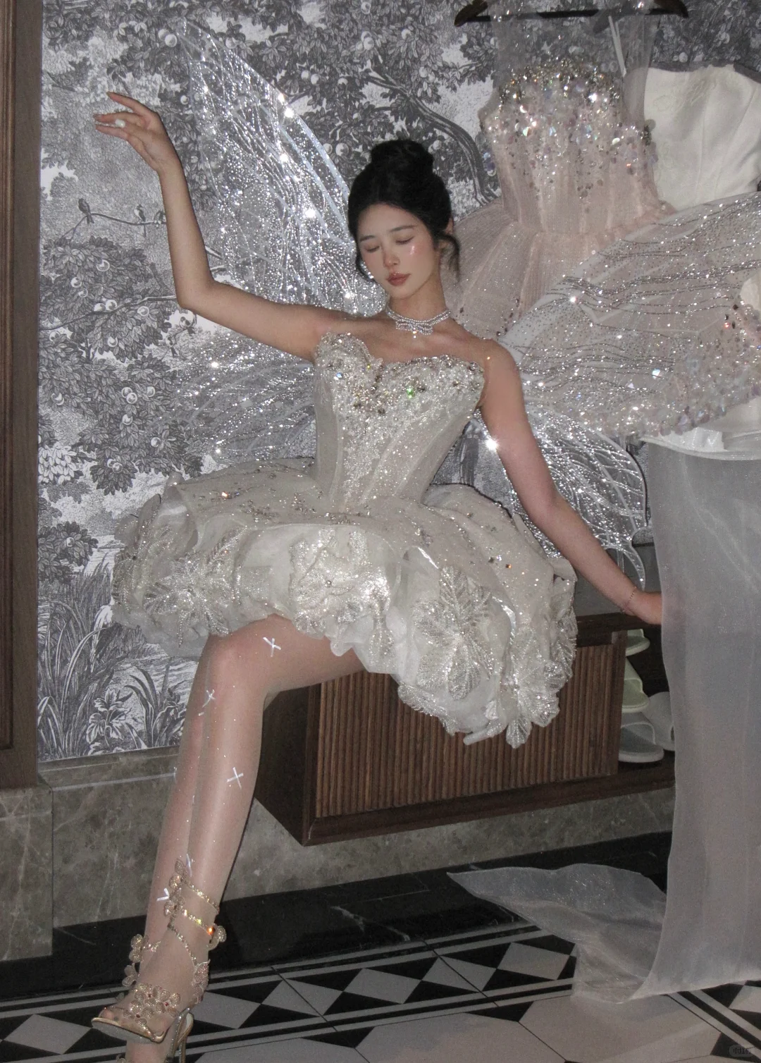 Cute A Line Sweetheart Neck Silver Sequin Beaded Tulle Homecoming Dress Party Dress SH3419