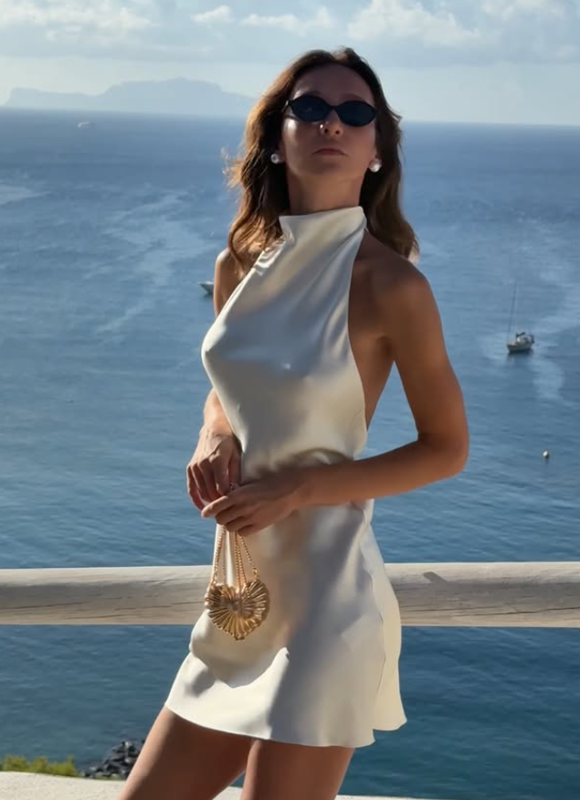Cute White A Line Halter Satin Open Back Short Homecoming Dress Outfits SH4455
