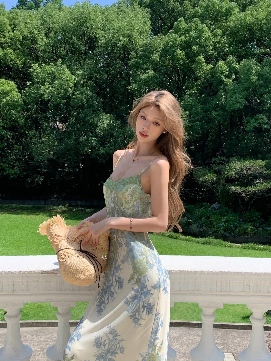 Elegant A Line Spaghetti Strap Green Print Floral Chiffon Prom Dress Evening Dress SH4482