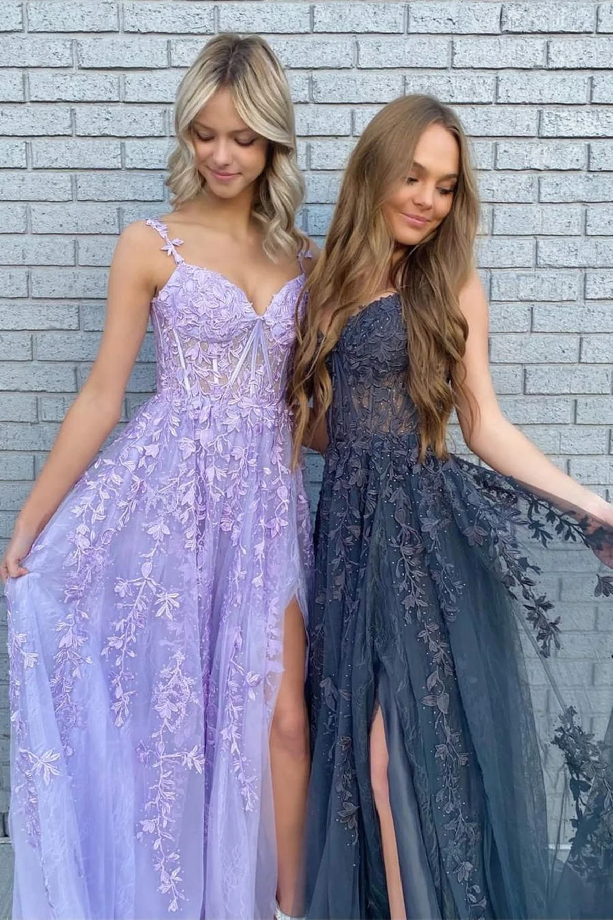 Elegant A Line V Neck Purple/Black Tulle Lace Long Prom Dresses, Purple/Black Lace Formal Graduation Evening Dress SH359