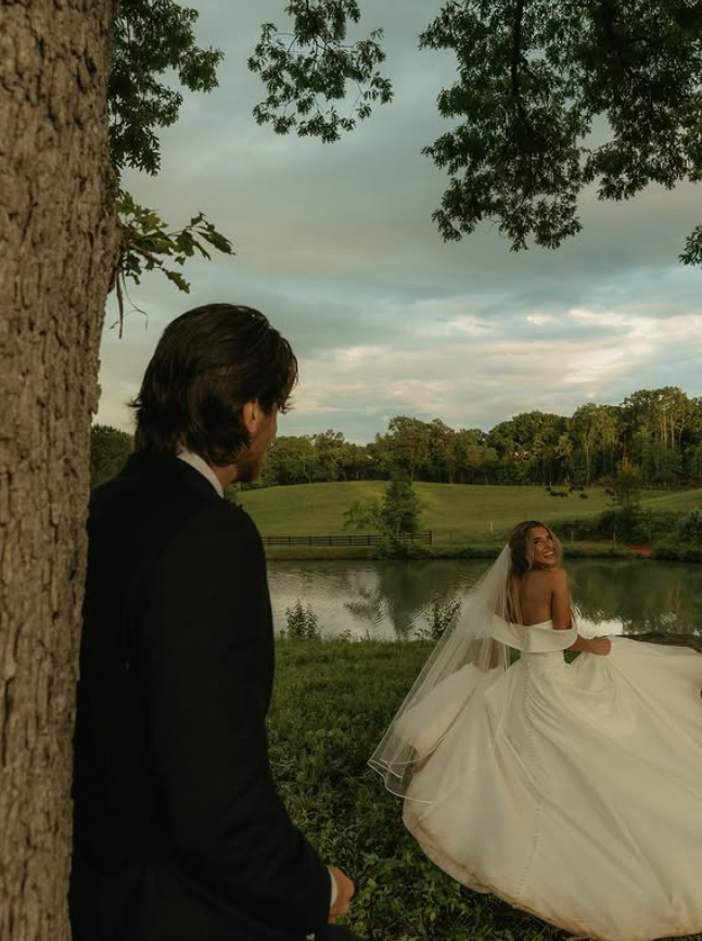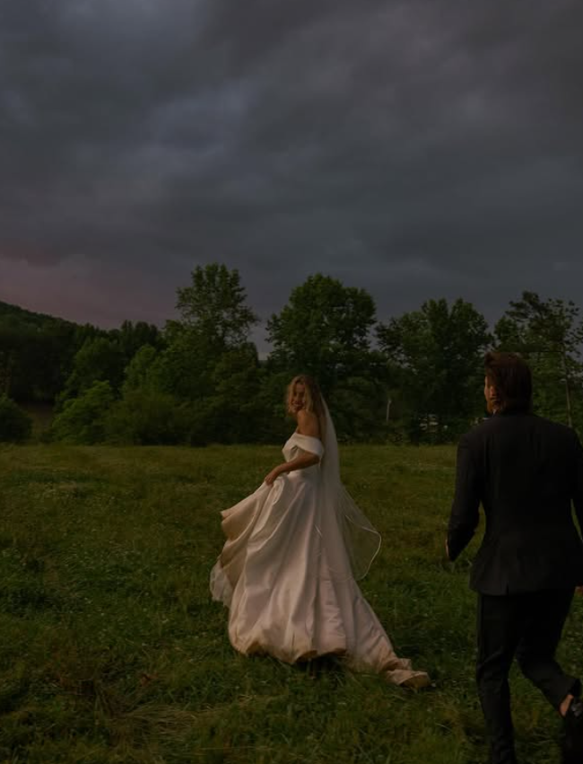 Elegant Ball Gown Off the Shoulder Pleated Simple Satin Wedding Dress SH4749