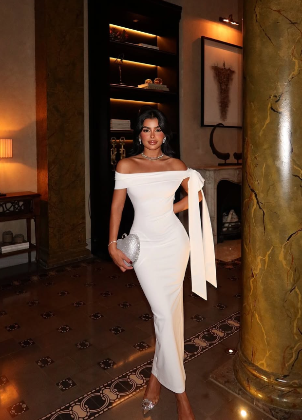 Elegant Sheath Off the Shoulder Satin Prom Dress Formal Dress Party Dress with Bow SH3747