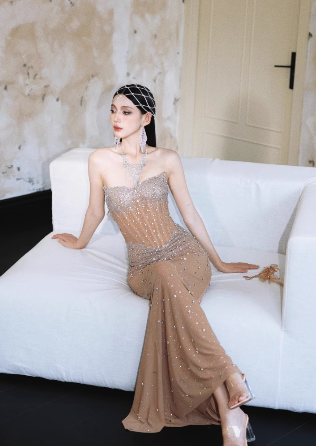 Exquisite Rhinestone Champagne Mermaid Sweetheart Neck Black Tulle Long Evening Dress Gown Dress SH3585