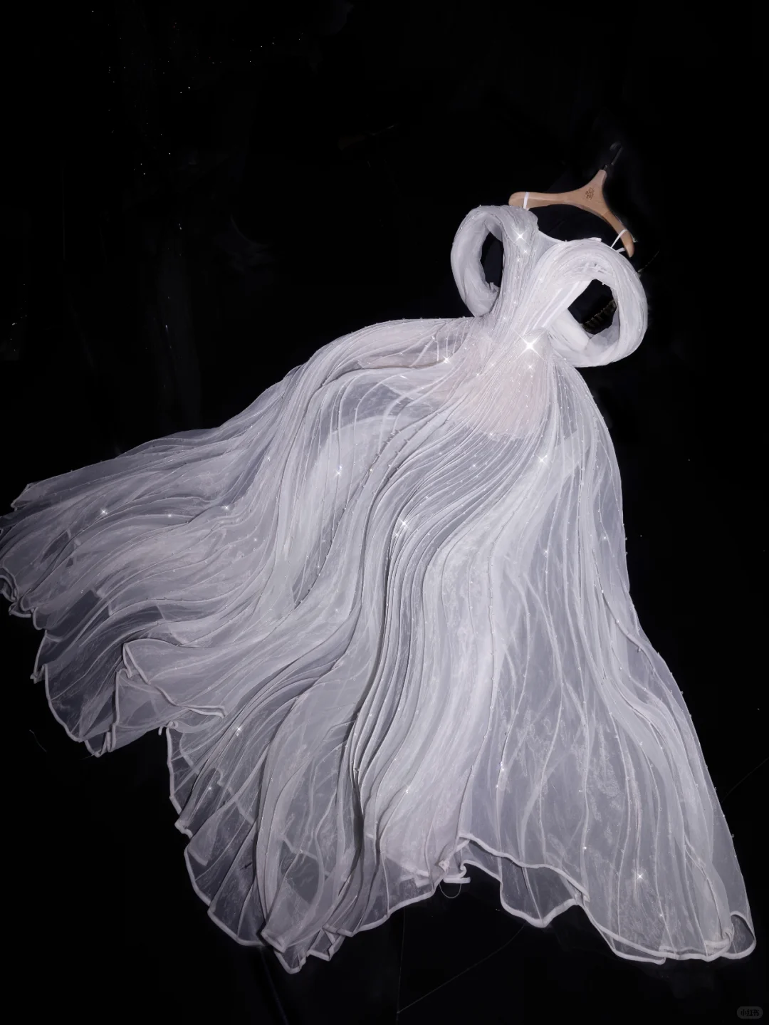 Flowy Gentle A Line Off the Shoulder White Tulle Long Prom Dress Party Dress SH3491