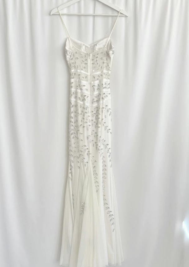 Gentle White Mermaid Spaghetti Straps Appliques Satin Tulle Long Prom Dress Evening Dress SH3545