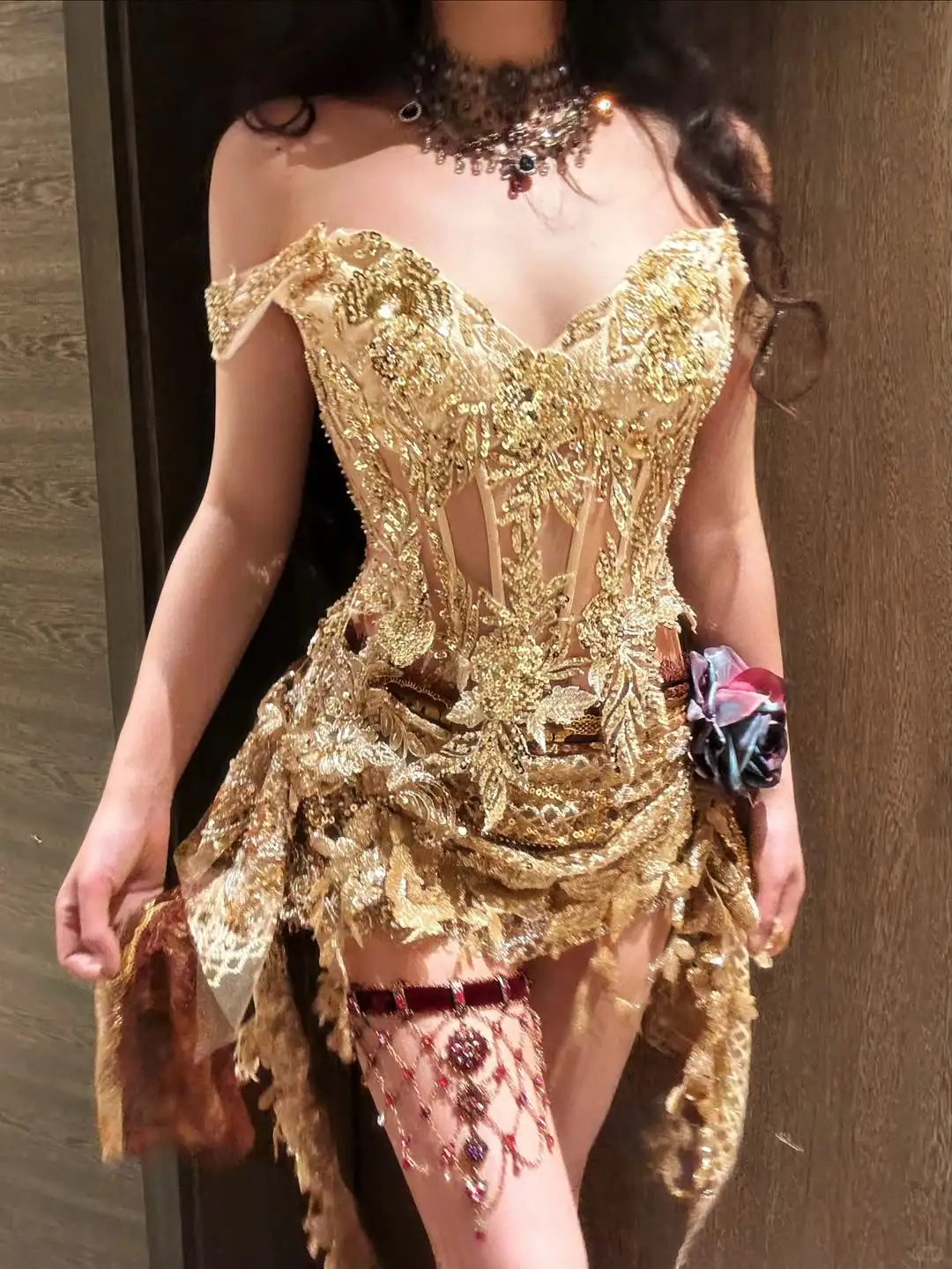 Golden A Line Straps Exquisite Sequin Short Homecoming Dress SH5012