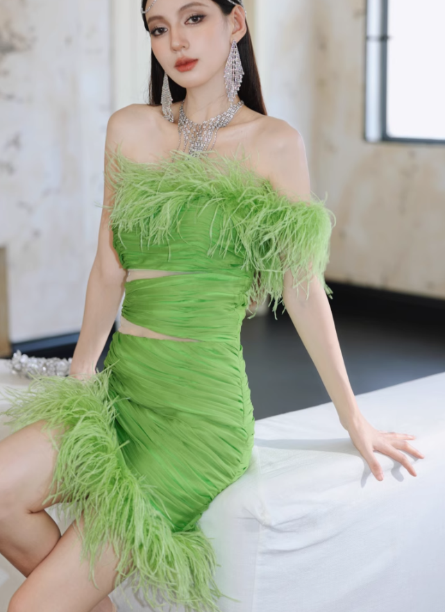 Green Feahter Sexy Sheath One Shoulder Pleated Satin Outfit Party Dress Homecoming Dress SH3523
