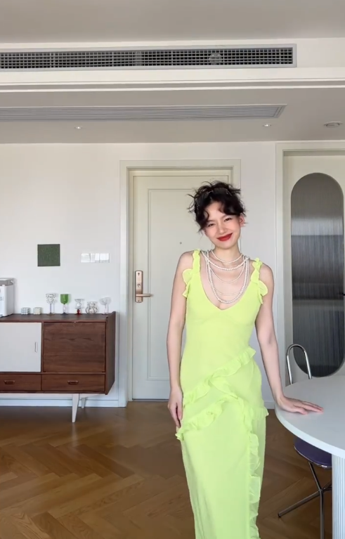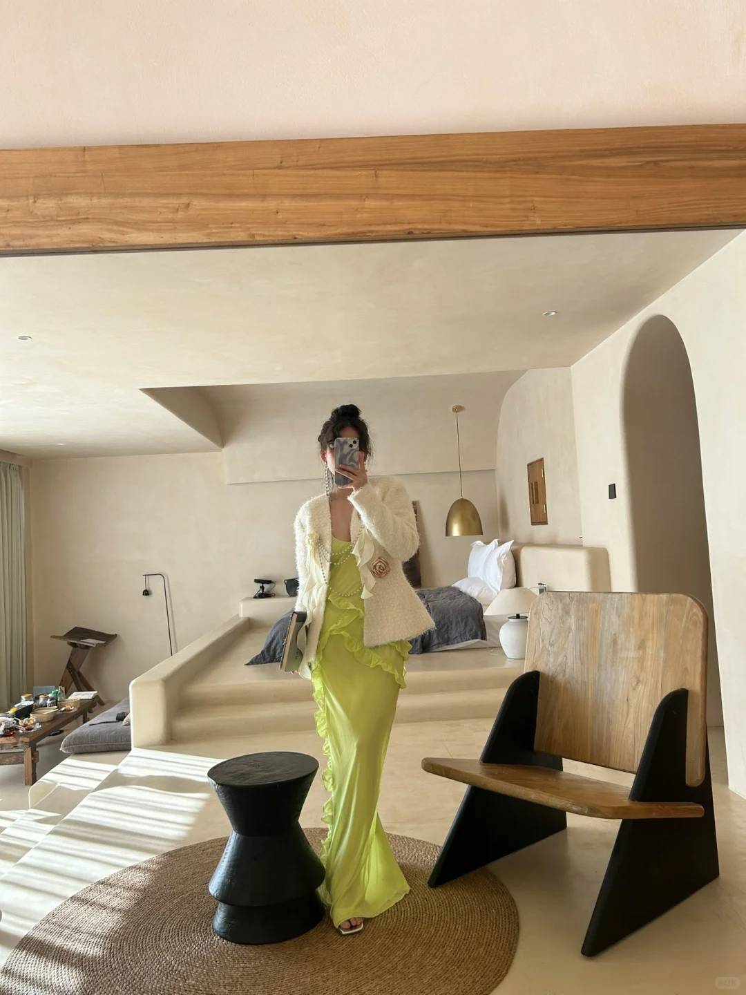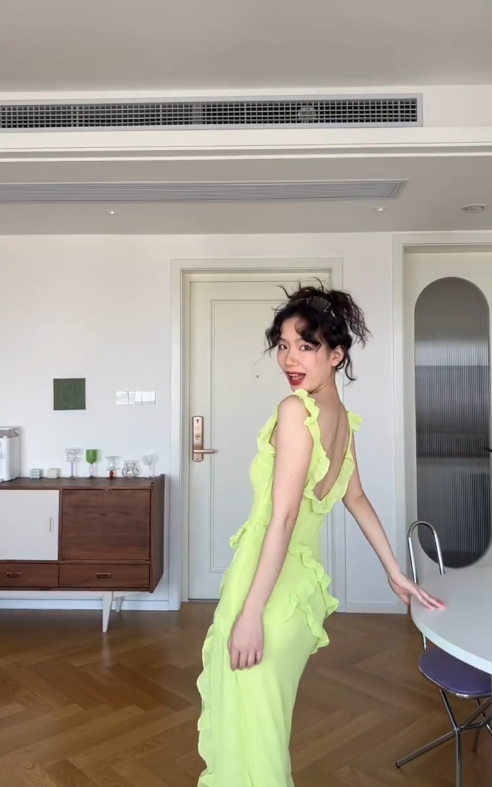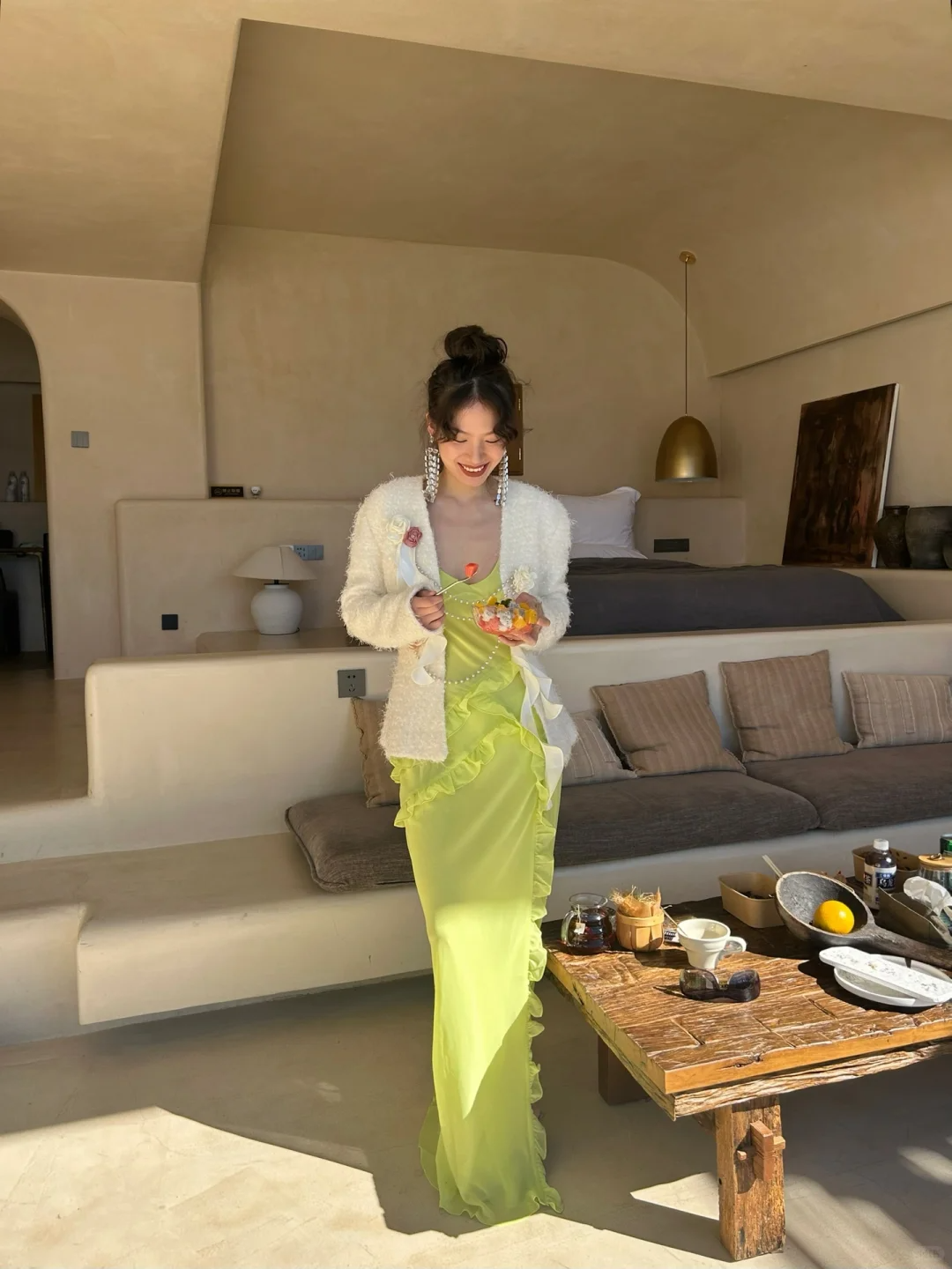 Green Sheath Straps Ruffle Chiffon Long Prom Dress SH4577