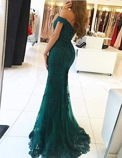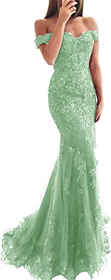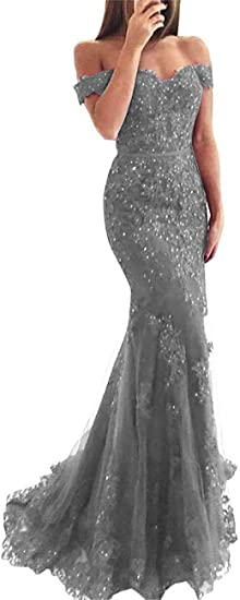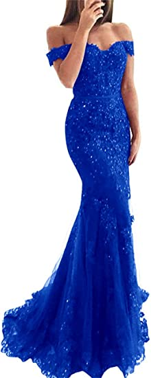 Lace beaded tulle maxi evening dress off the shoulder mermaid formal party dress SH558