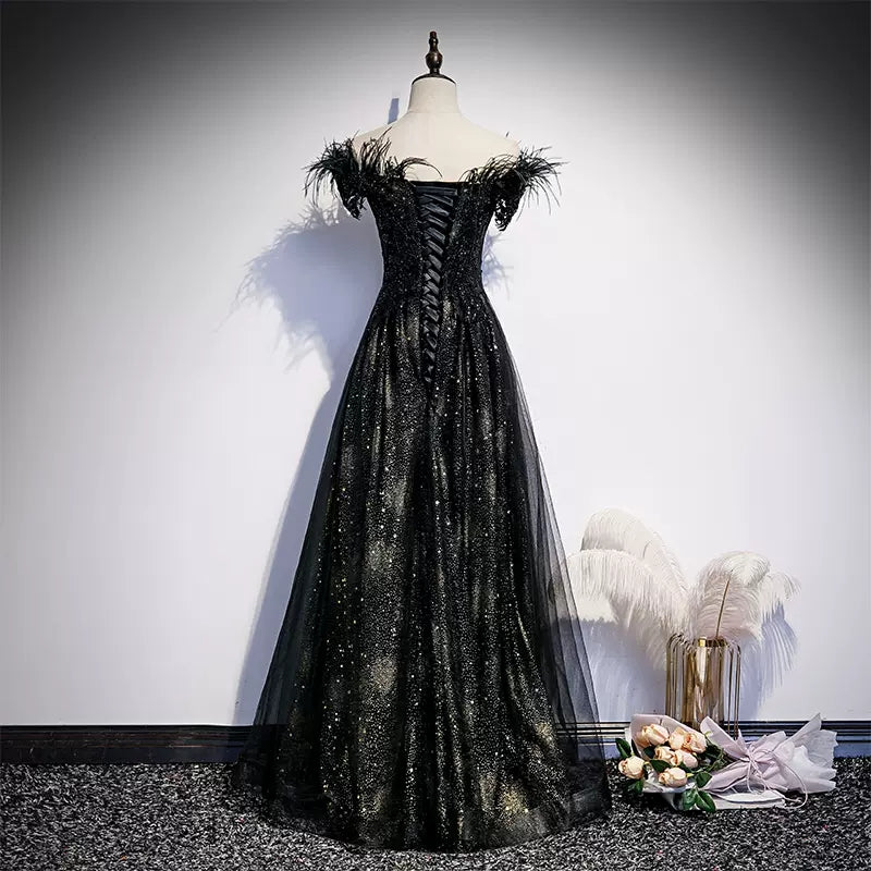 Off the Shoulder Black Prom Dresses Sexy Evening Dress SH091