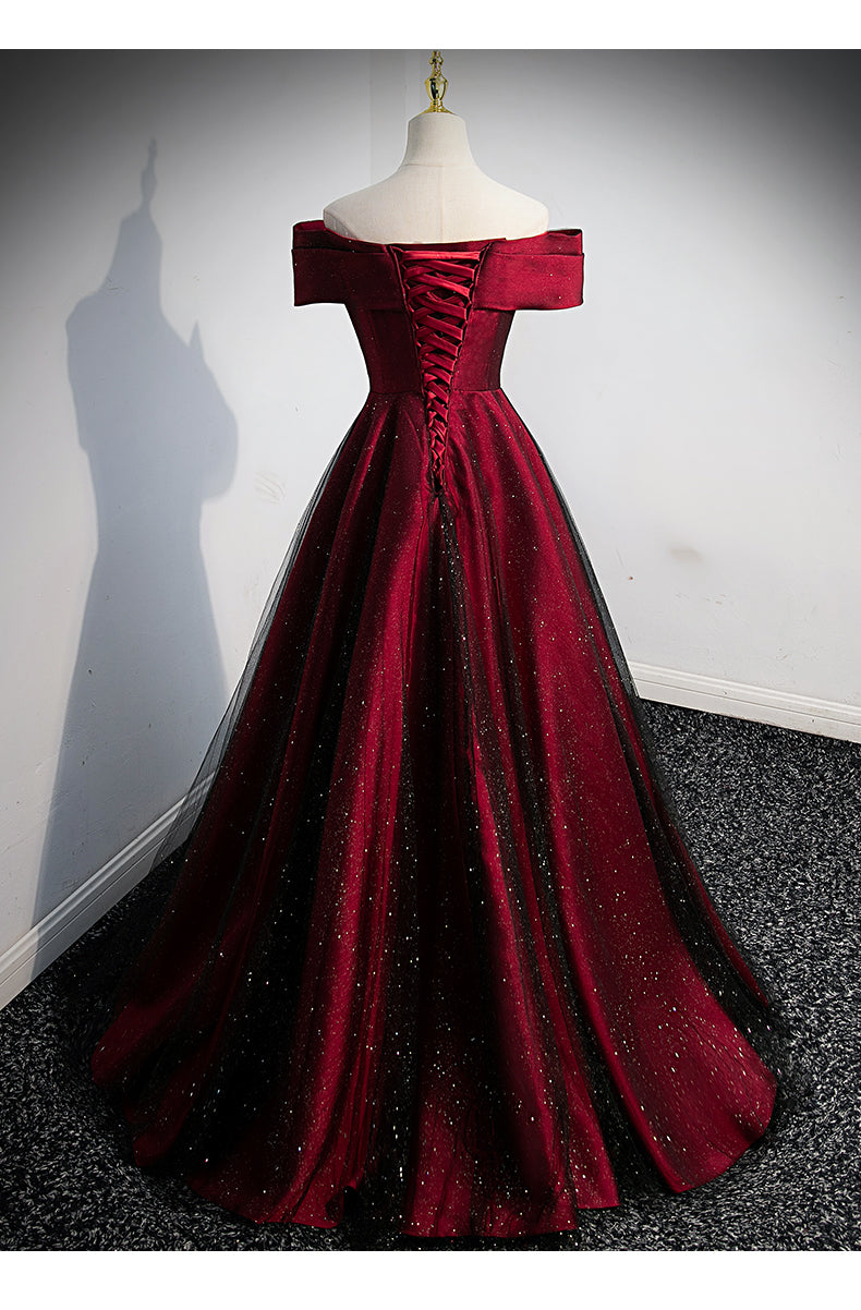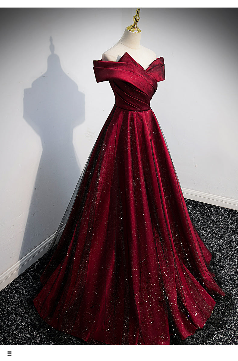 Off The Shoulder Red Short Sleeves Long Prom Dresses SH045
