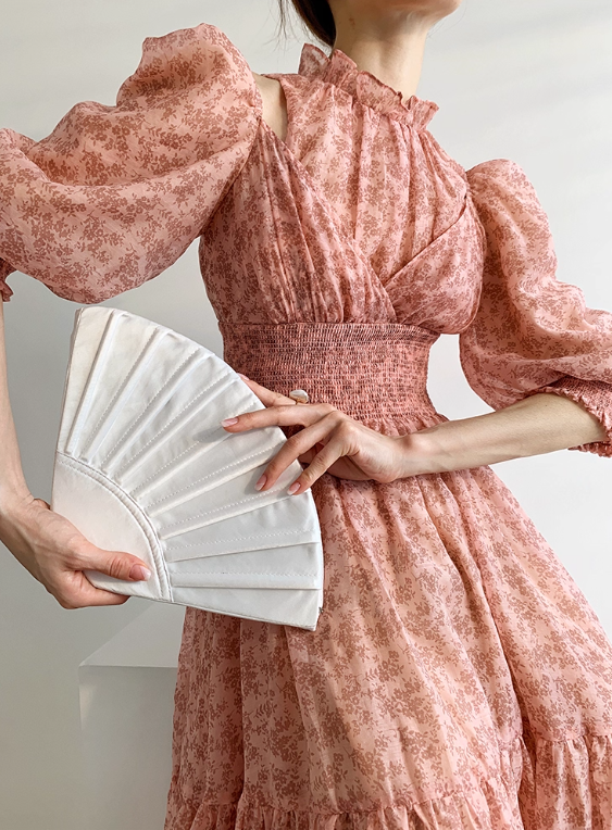 Pink A Line Puff Print Floral Chiffon Prom Dress Outfits SH4730