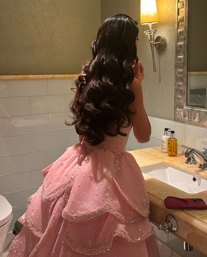 Pink A Line Strapless Tiered Beaded Tulle Party Dress Evening Dress Ball Gown SH2819