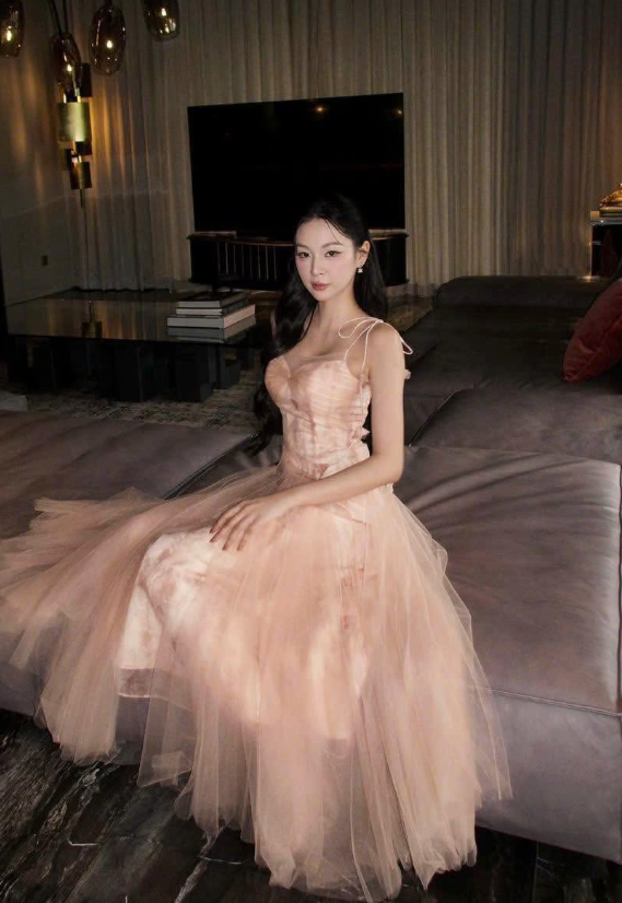 Pretty A Line Spaghetti Straps Floral Flowy Tulle Long Prom Dress Graduation Prom Dress SH5299