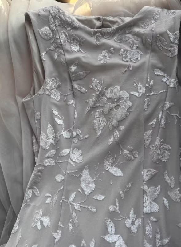 Purple A Line Round Neck Print Floral Tulle Satin Prom Dress Outfits SH4733