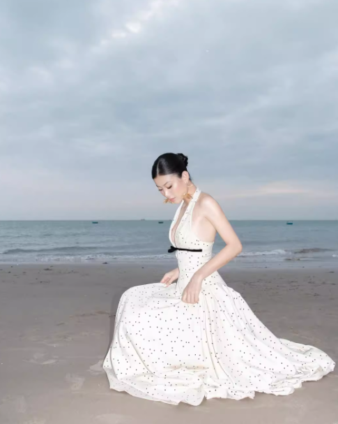 Retro A Line Halter Polka Dot Satin Open Back Prom Dress Evening Dress SH3113