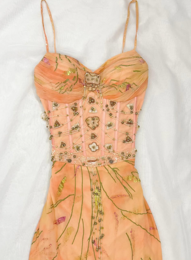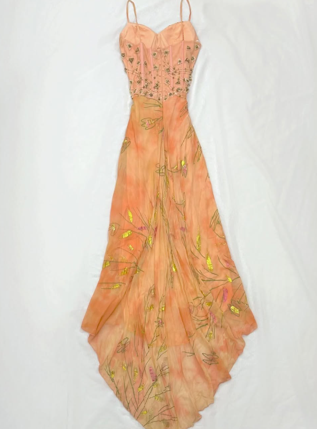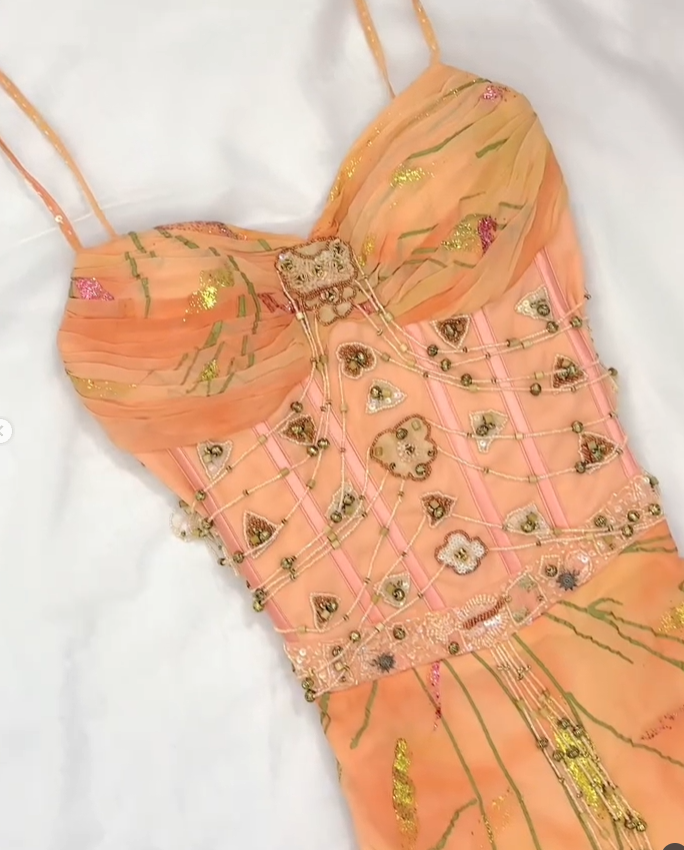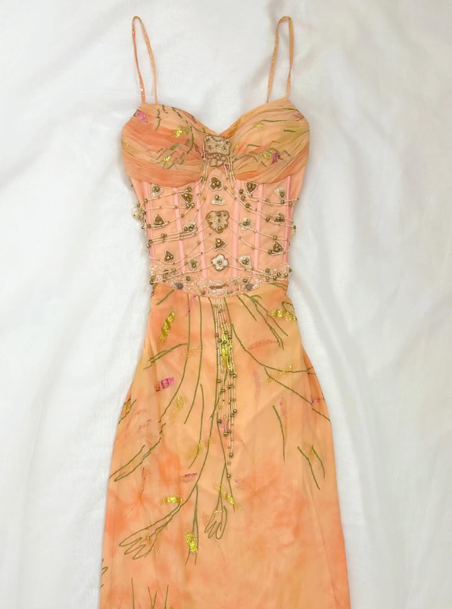 Retro Orange Print Floral A Line Spaghetti Straps Chiffon Long Prom Dress Cocktail Dress SH3547