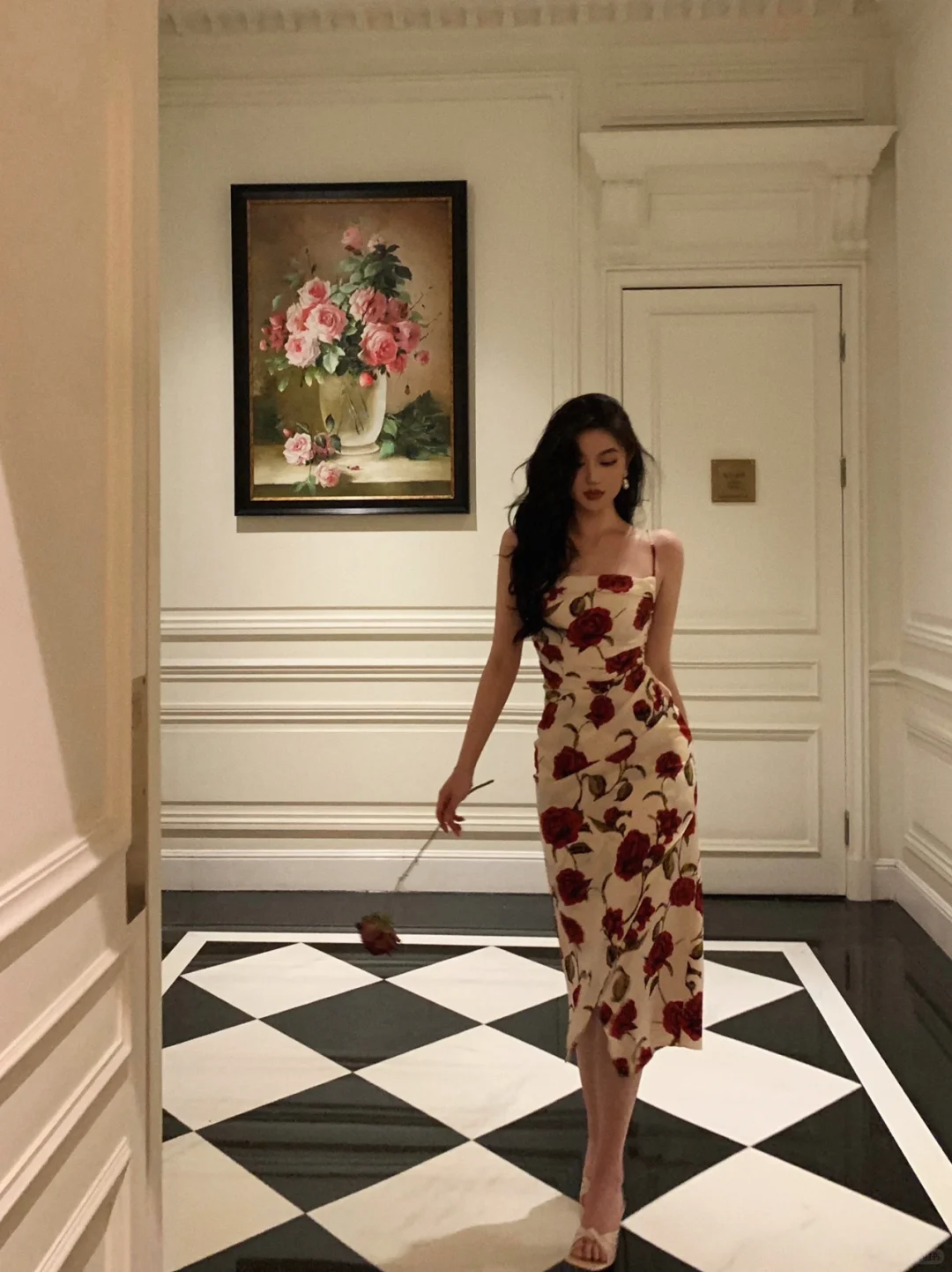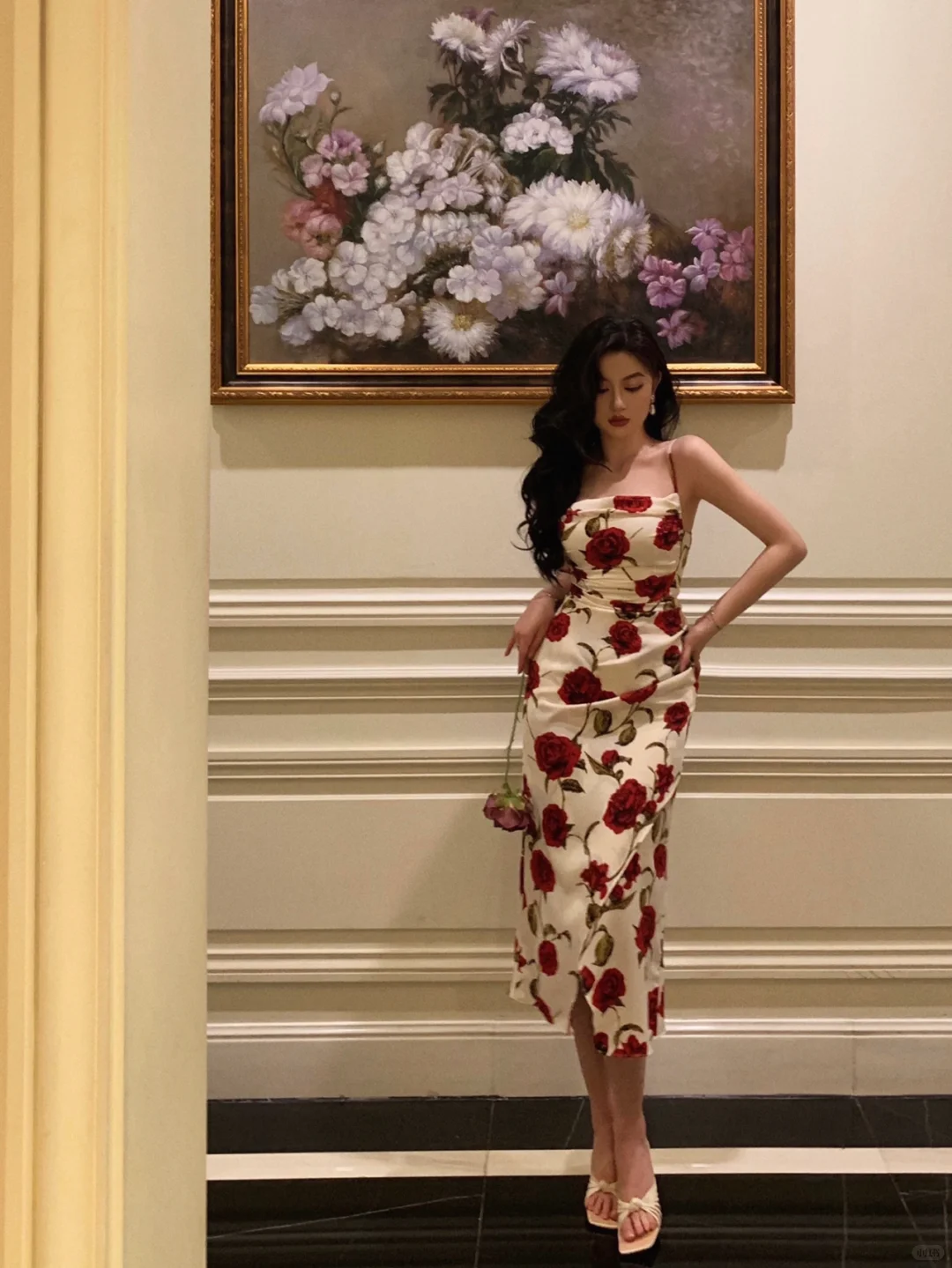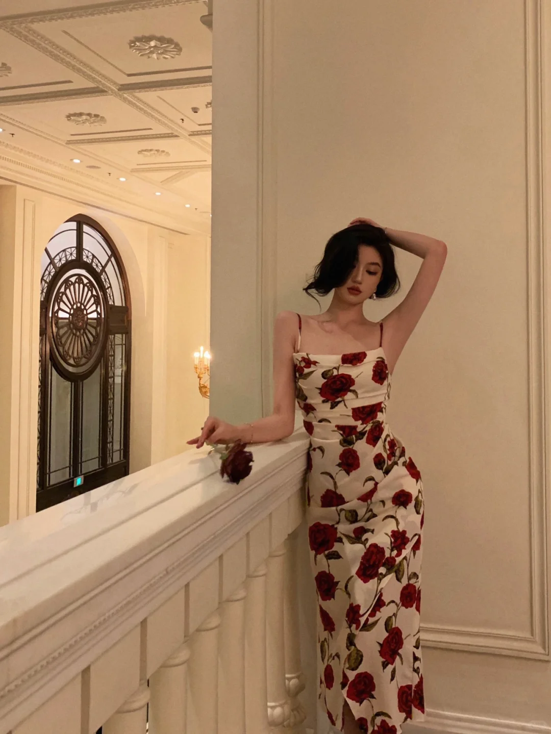 Romantic Rose Sheath Spaghetti Strap Satin Prom Dress Outfits SH4485