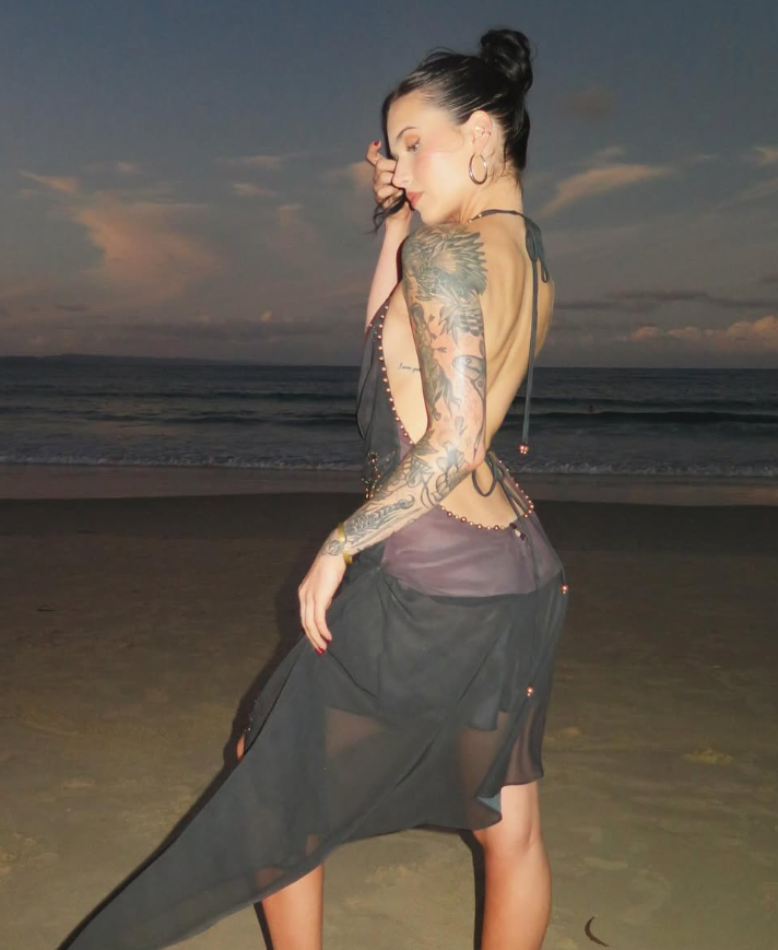 Sexy Black Sheath Halter Pleated Beaded Chiffon Vacation Dress Outfits SH3894