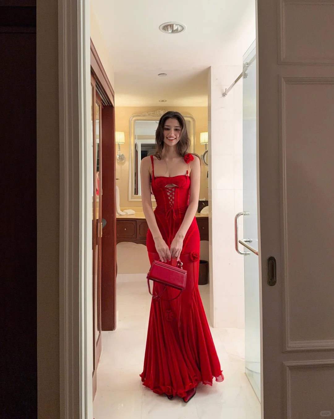 Sexy Mermaid Spaghetti Strap Flower Tulle Party Dress Evening Dress SH3353