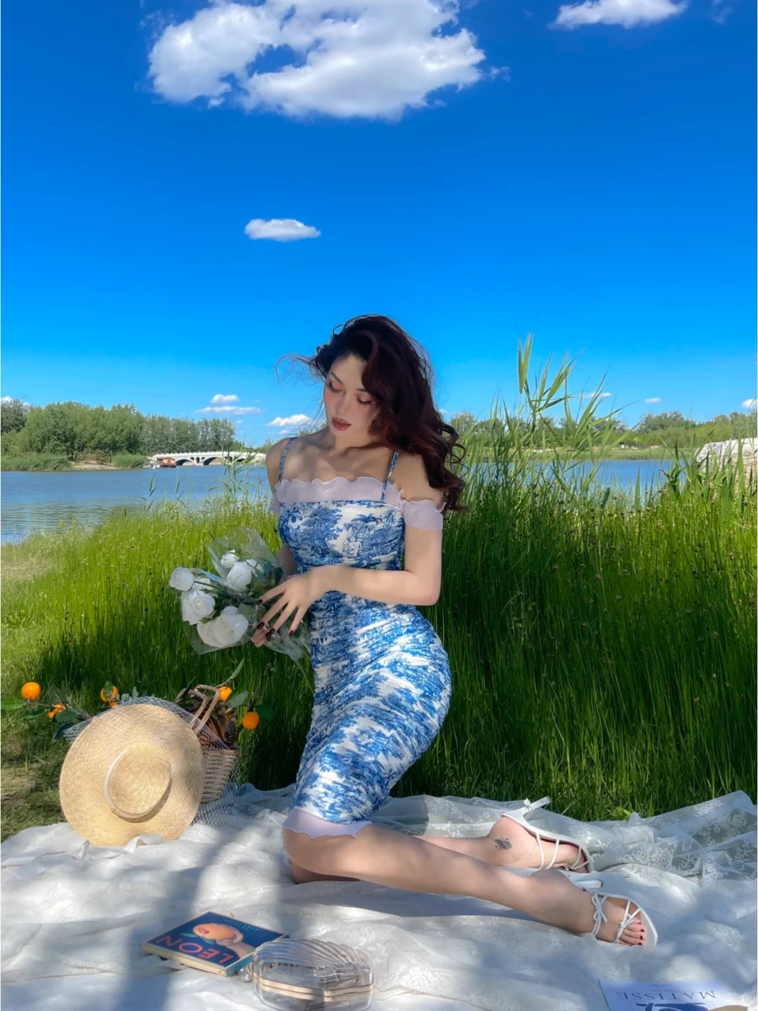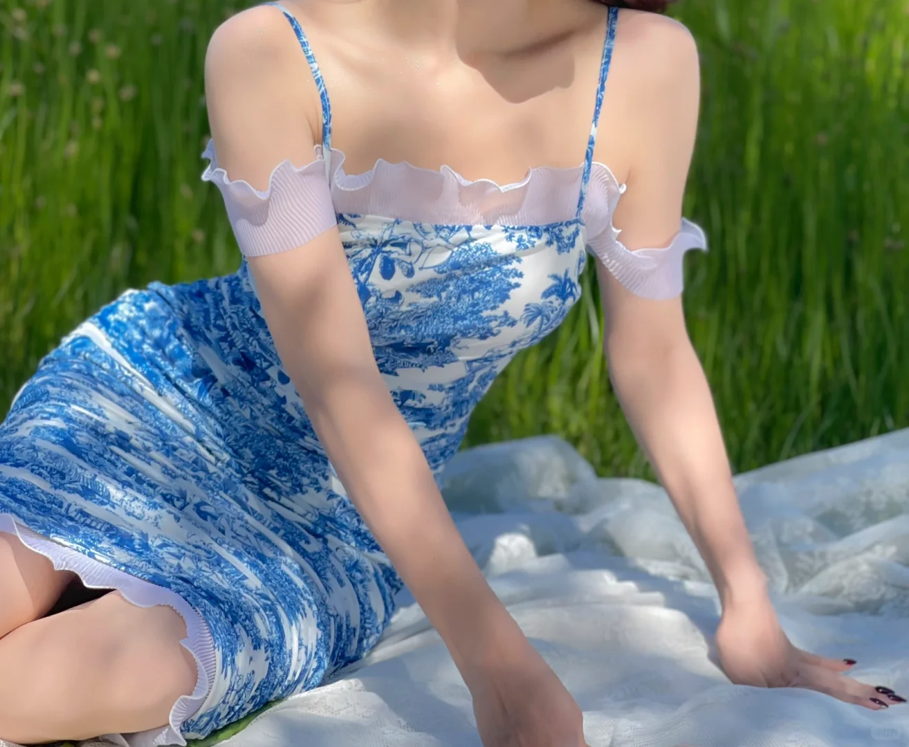 Sexy Sheath Spaghetti Strap Blue Print Floral Satin Short Prom Dress Homecoming Dress SH4228
