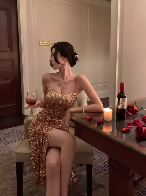 Sexy Sheath Spaghetti Straps Golden Sequin Prom Dress Evening Dress 16th Birthday Dress SH4051