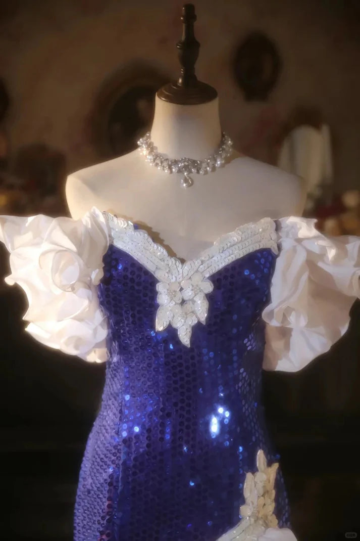 Shiny Mermaid Off the Shoulder Royal Blue Sequin Prom Dress Party Dress SH4069