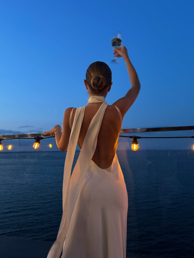 Simple White A Line Spaghetti Strap Satin Open Back Prom Dress Wedding Guest Dress SH4531