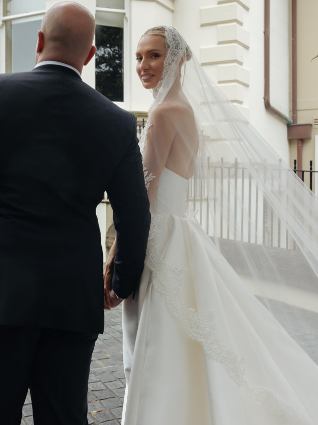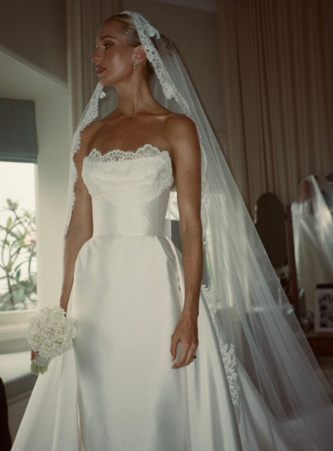Stunning Ball Gown Strapless White Lace Satin Long Wedding Dress SH4695