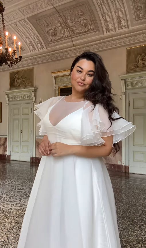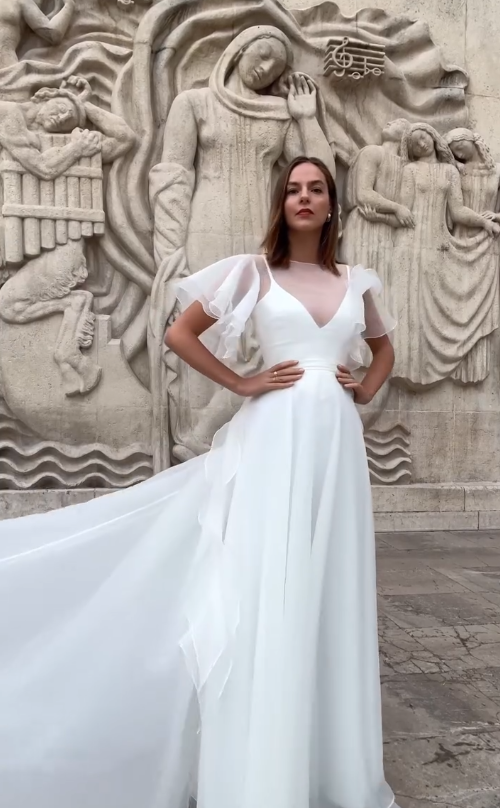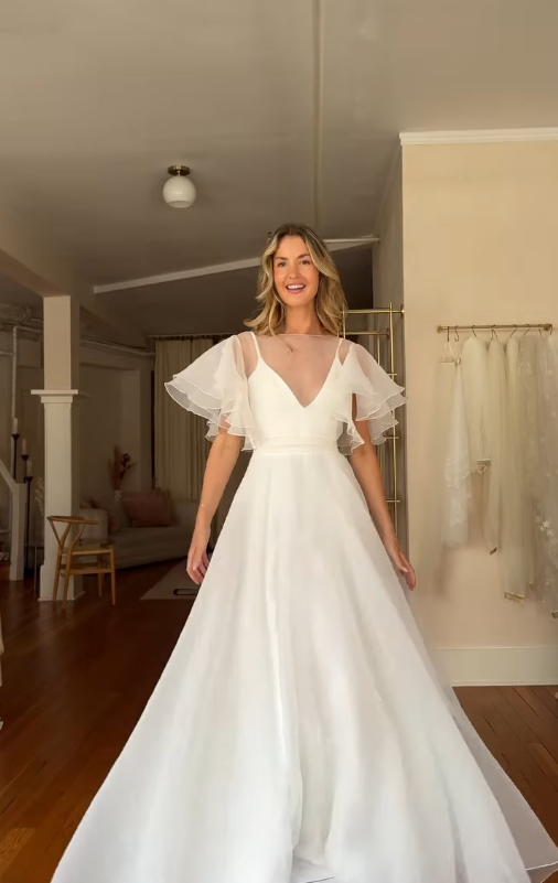 Stunning Ball Gown White Ruffle Organza Long Sweep Wedding Dress SH4709