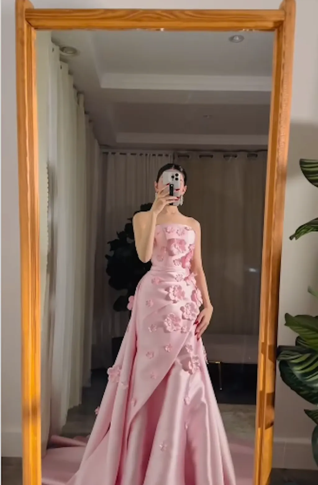 Sweet Pink Mermaid Strapless 3D Floral Satin Prom Dress Evening Dress SH1902