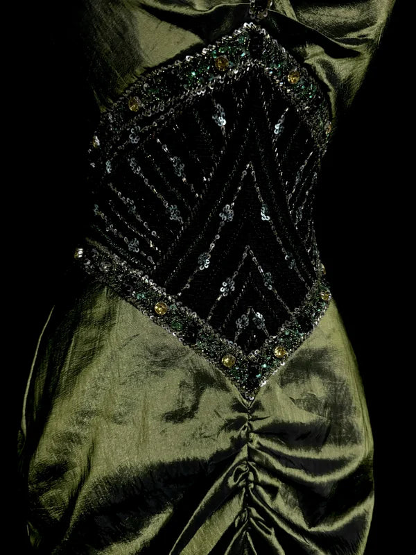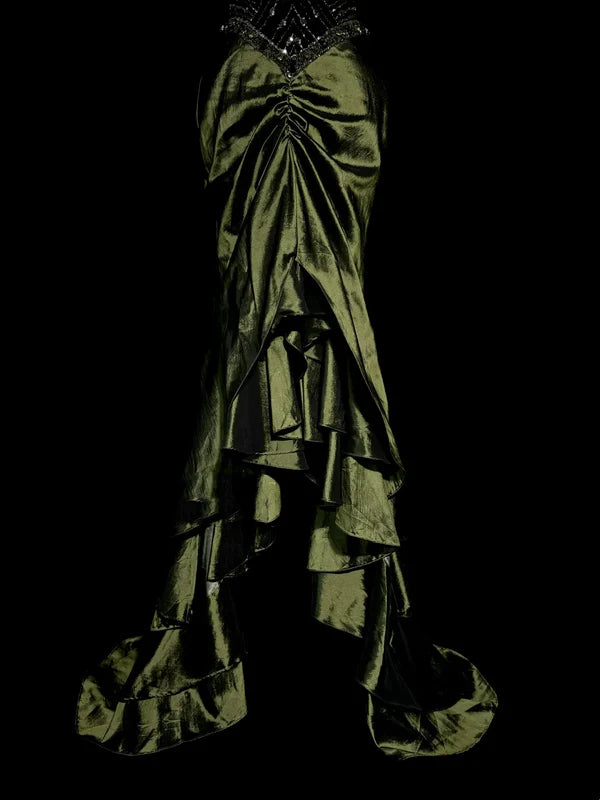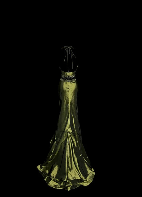Vintage Mermaid Halter Olive Green 1950s Retro Classy Satin Long Prom Dresses Party Dress 21st Birthday Outfits Graduation Dresses SH3507
