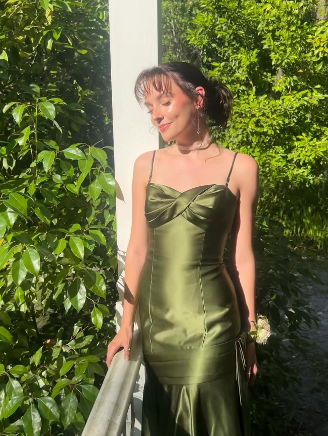 Vintage Mermaid Spaghetti Strap Green Satin Party Dress Evening Dress SH2822