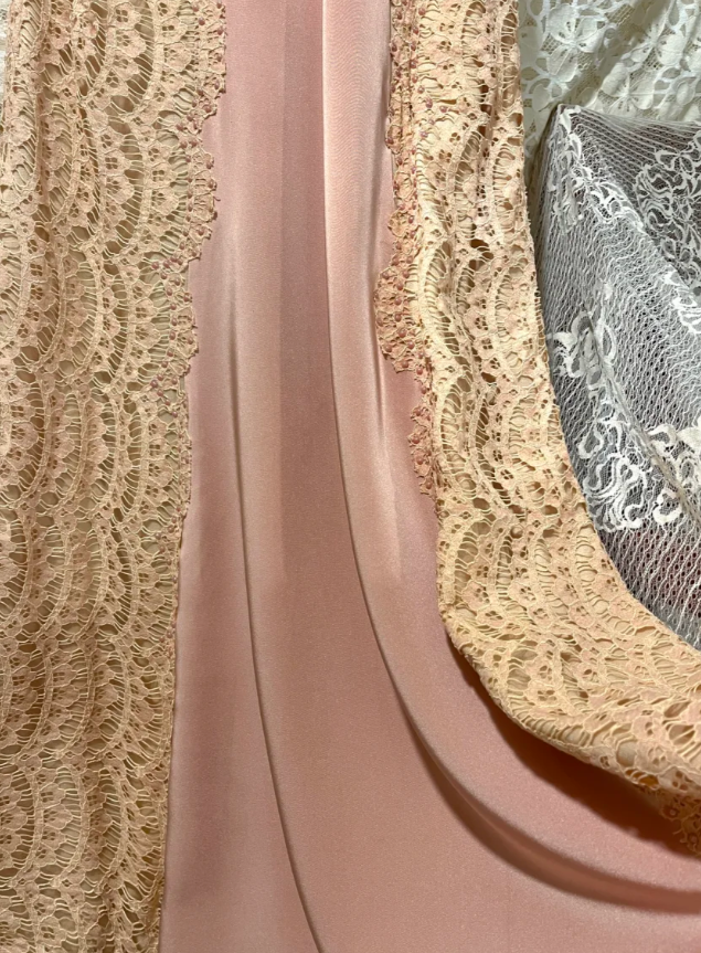 Vintage Mermaid V Neck Lace Pink Satin Prom Dress Wedding Guest Dress SH4655