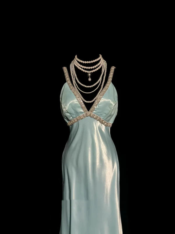 Vintage Sheath Straps Light Sky Blue 90s Long Prom Dresses Party Dress 20th Birthday Outfits Graduation Dresses SH3506