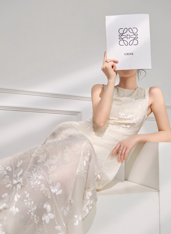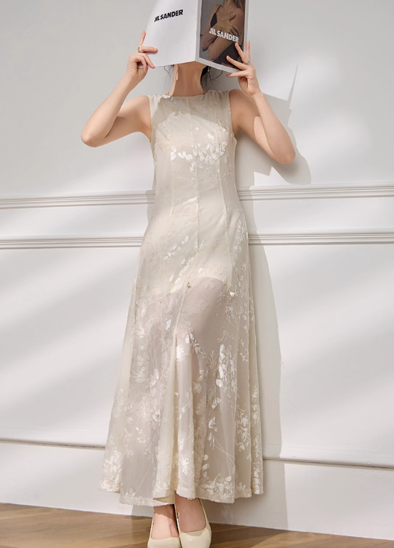 White A Line Round Neck Print Floral Chiffon Prom Dress Outfits SH4734