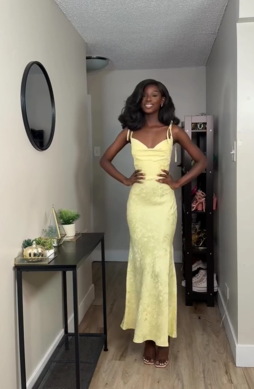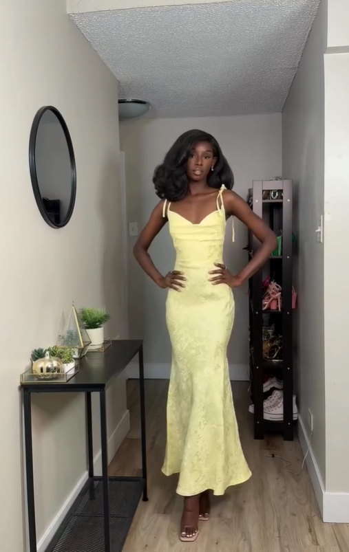 Yellow Mermaid Spaghetti Strap Print Floral Satin Prom Dress Outfits SH4742